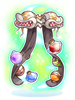A plant cape covered in colorful potions.