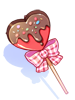 A costume decoration modeled after a heart stick chocolate. |